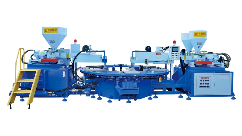 SC-606-3-100T全自動回轉(zhuǎn)式塑膠類三色幫帶注射成型機(jī)(臥式)1.該機(jī)臺配備多功能操作系統(tǒng),可生產(chǎn)單色、雙色及三色等不同顏色的PVC鞋帶,也可生產(chǎn)童鞋鞋底。