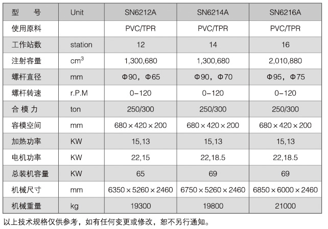 SN-6212A全自動塑膠類雙色雨鞋注射成型機