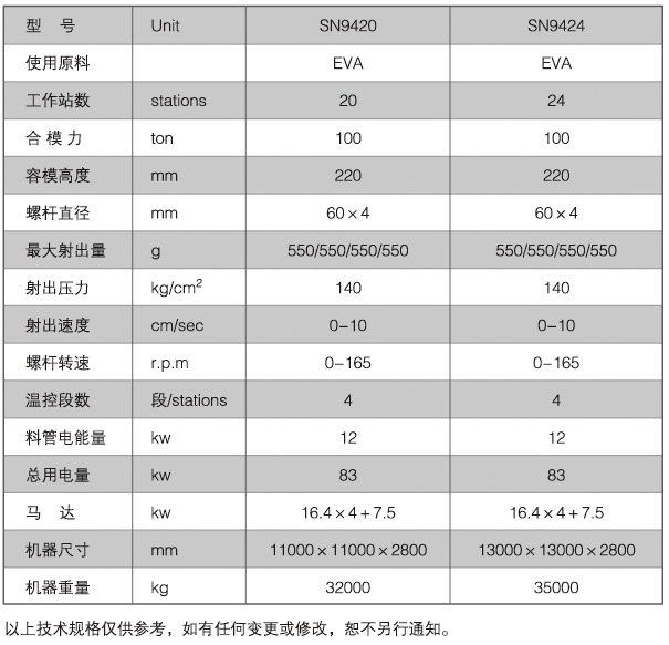 SN-9424全自動回轉式塑膠鞋類初坯注射成型機